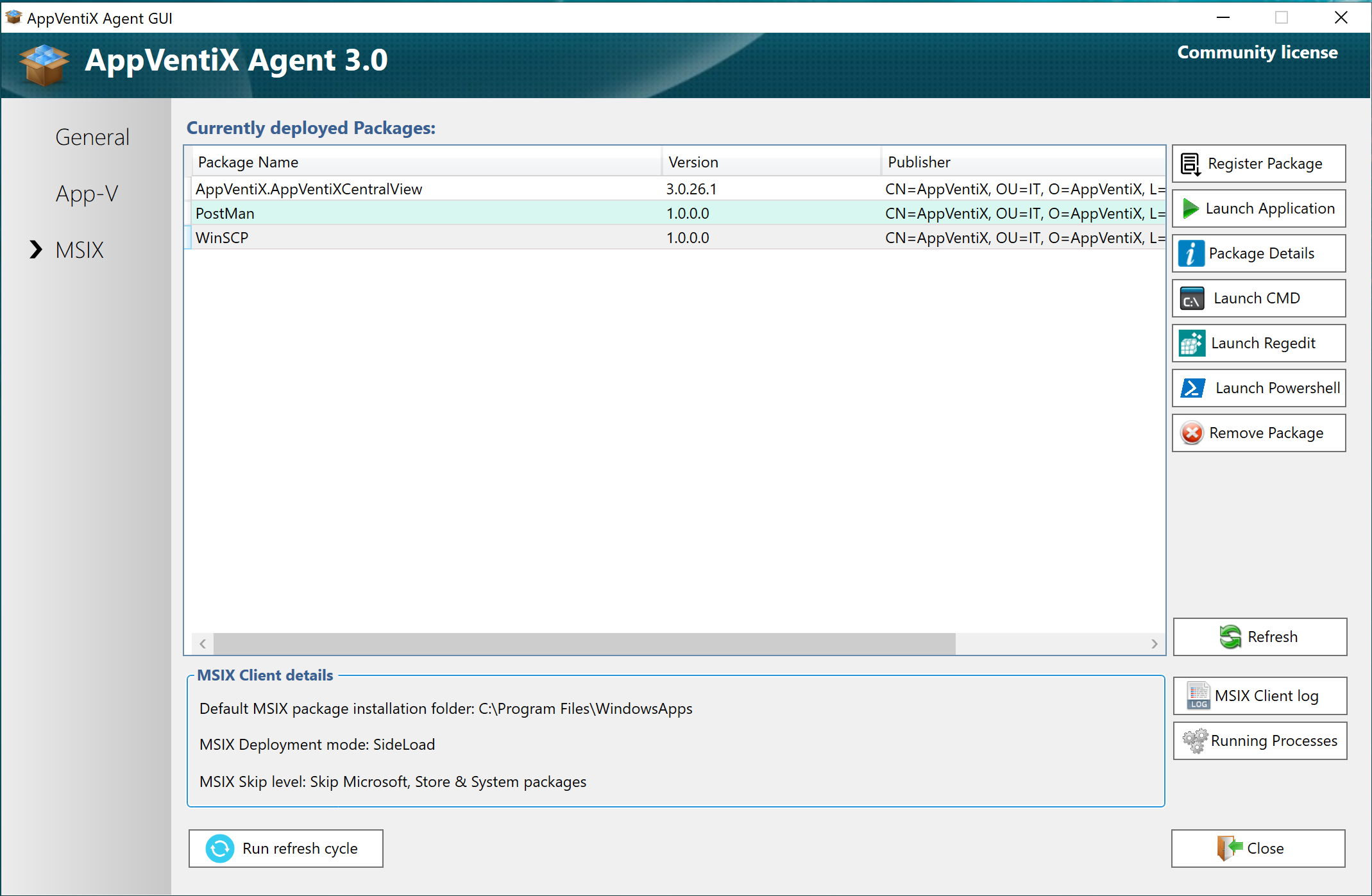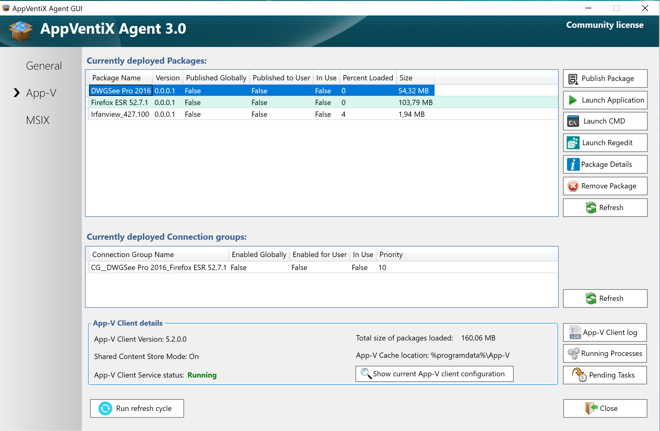 - The agent GUI has been re-designed and can be used to manage App-V and MSIX packages
