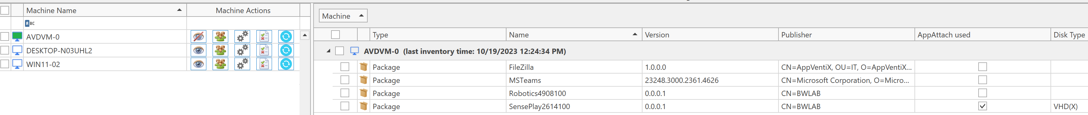 The machine inventory has been improved and will show you if packages are a deployed as native MSIX or delivered through app attach: