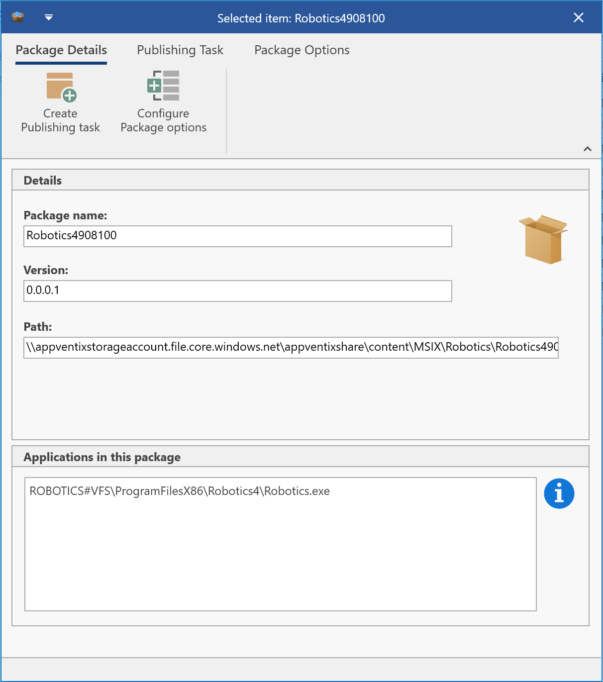 A new package details window has been added where you can see the applications inside the package. These are the shortcuts that are presented to the user when the package is published for the user.