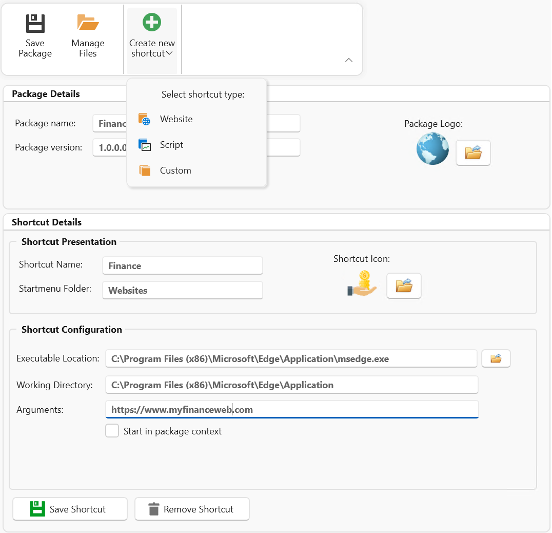 Create and edit existing packages, easily create packages directly from the AppVentiX console to manage your shortcuts, files and scripts.