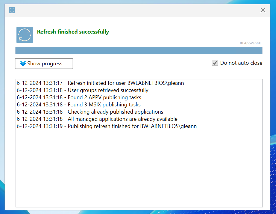 A new publishing progress window has been added to the AppVentiX agent GUI