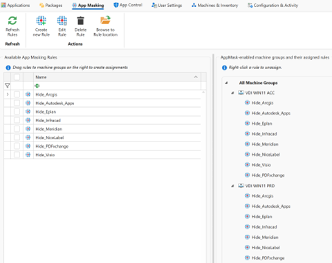 App Mask rules can now be assigned to machine groups with an intuitive drag-and-drop action, simplifying targeting and deployment. Additionally, rules are now stored in one location, removing the need to manage multiple content shares