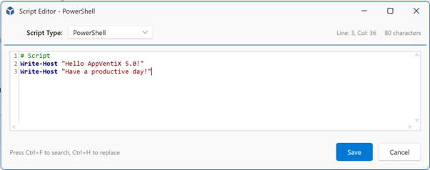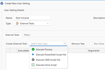 Create external tasks with an embedded script editor, no need to launch scripts from a network share:
