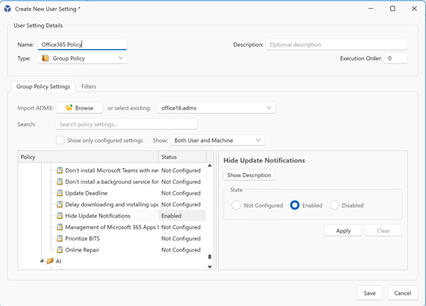 Administrators can now centrally configure and deploy User Preferences to fully control the user workspace without the need for complex logon scripts or multiple tools. AppVentiX supports workspace management across on-premises (Active Directory), cloud (AVD\AWS\Windows365), and Entra ID only (laptop) environments, as well as offline and non-persistent (VDI) scenarios. All settings are managed from a single, intuitive interface, making it easy to create, edit, and assign configurations to users or devices.