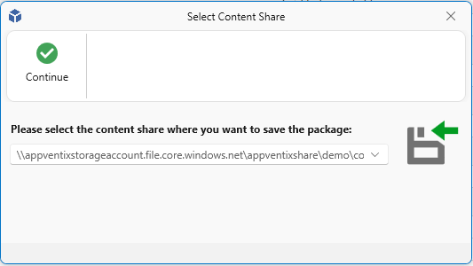 1.2 Select the Content Share where you’d like to create the package and click Continue