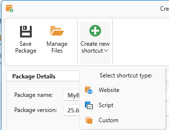1.4 Create a new shortcut to your application, script or website by clicking on Create new shortcut