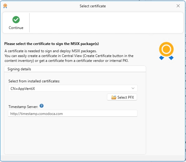 Click on Save Package and select the code-signing certifiate to continue with the process.