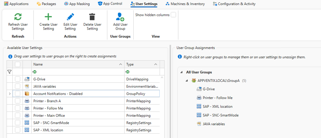 AppVentiX offers a modern, fully supported alternative for managing user workspaces. Gain precise control over user preferences, application settings, drives, printers, and trusted applications using familiar administrative templates and centralized policies. AppVentiX delivers a predictable, secure workspace experience across physical, virtual, and cloud environments—without the complexity of legacy tooling.